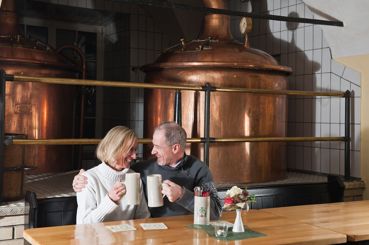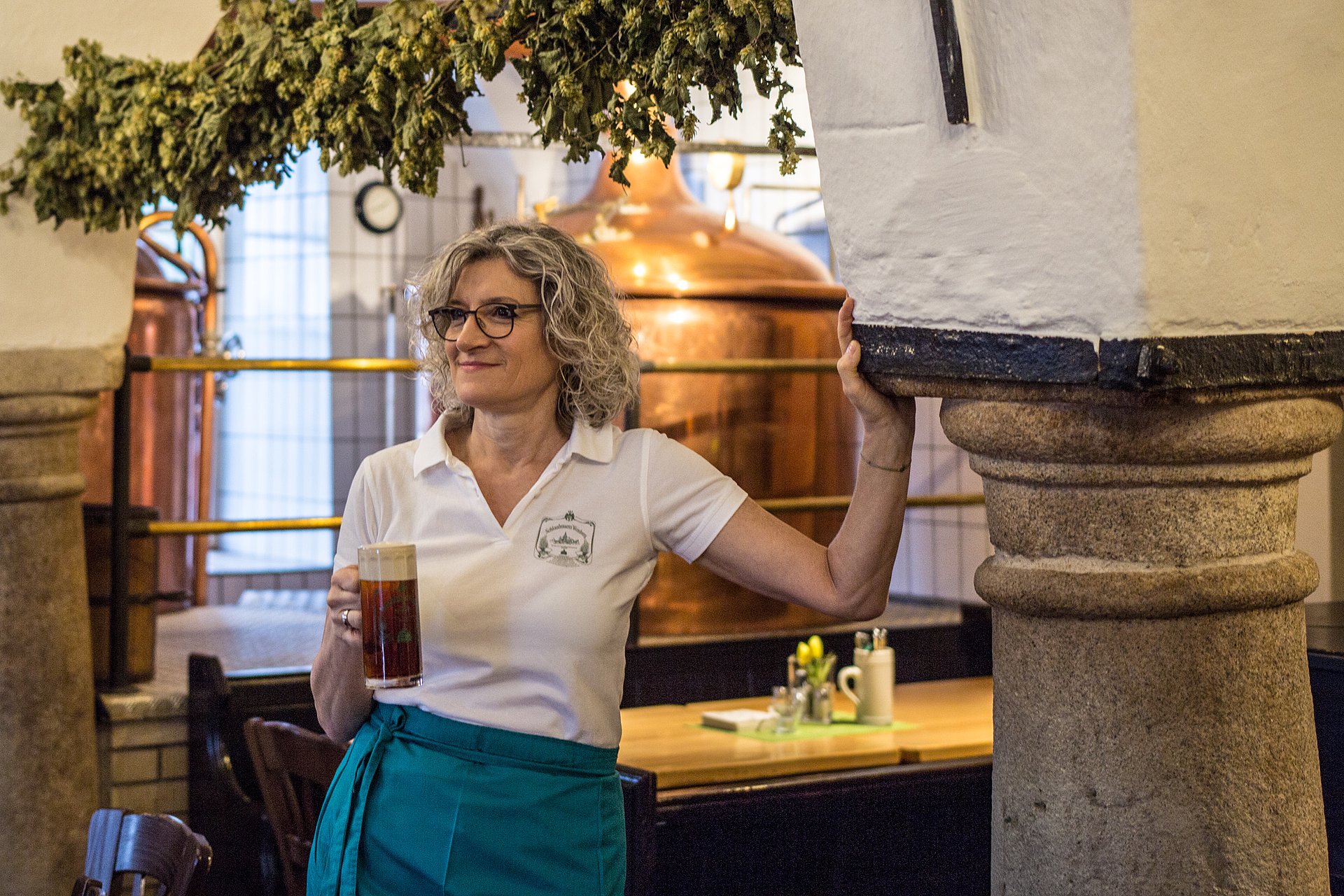 The 400-year-old walls of the former estate of Schloss Weinberg are now home to the Schlossbrauerei brewery. Beer has been brewed here since the Middle Ages, but Waltraud Leitner is almost certainly the first woman to hold the brewing paddle in her hands in this historic building. The beer is brewed right in the dining room, where the brewing kettle and lauter tun are located. A master brewer assists Waltraud Leitner with the brewing, while the trained restaurant manager takes care of the rest herself. ‘I enjoy brewing just as much as working in the restaurant. And I can personally vouch for the quality of the beer,’ says the passionate landlady.